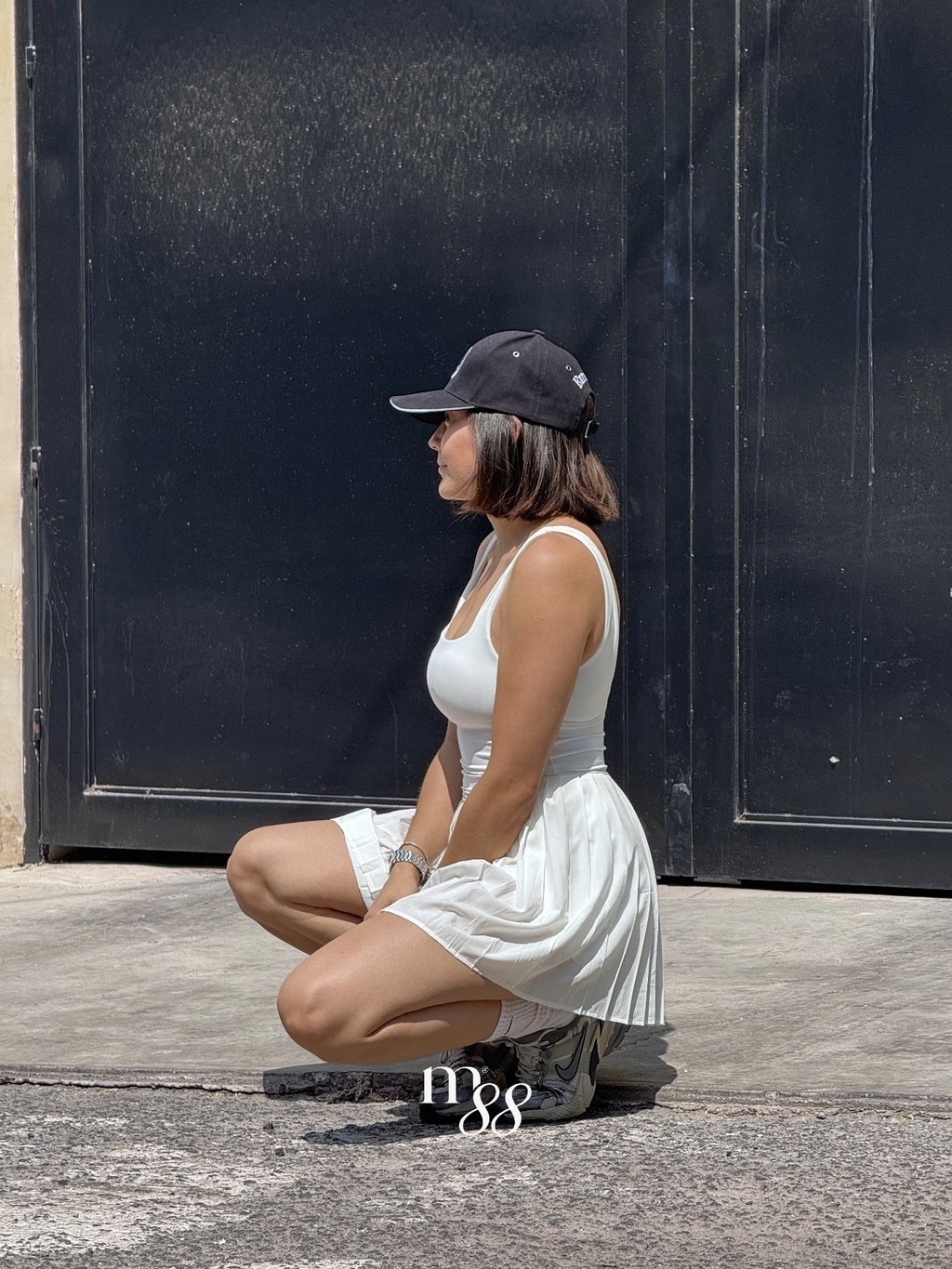 Este precioso vestido tiene copas, short debajo de la falda y el short tiene bolsas, la tela es súper suavecita
